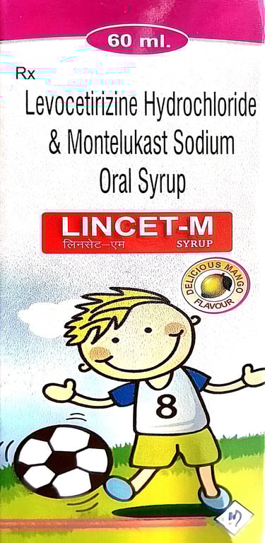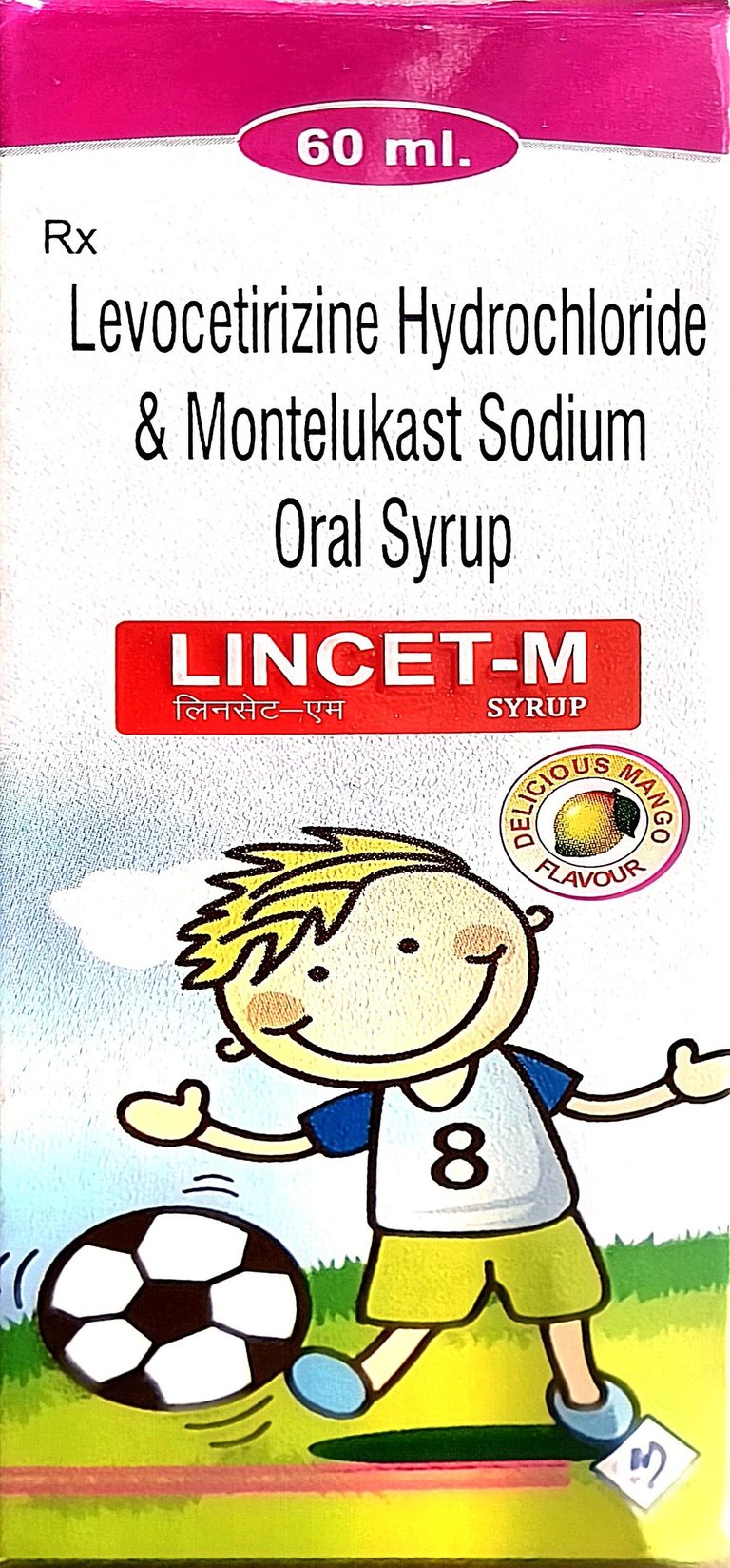 Lincet-M Syrup contains Levocetirizine Hydrochloride and Montelukast Sodium in a fixed-dose combination formulation.
